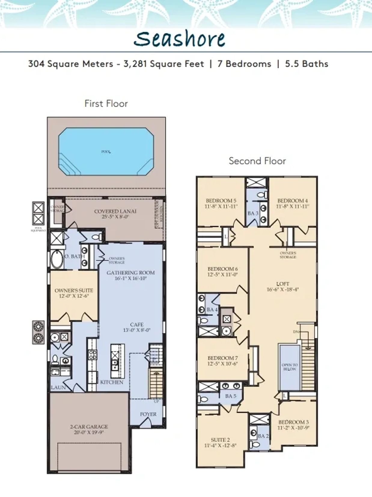The expansive Seashore is built for entertaining, with up to seven bedrooms, a comfortable loft, private courtyard or heated pool, and open gathering room. With two separate living spaces for entertaining plus plenty of storage, you can live and entertain in style, whether the Seashore is your vacation home or your everyday home.